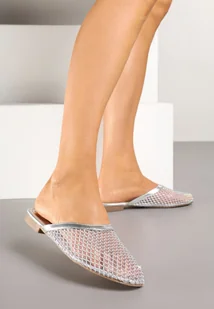 Srebrne Klapki z Transparentnej Siatki z Cyrkoniami Lanissa