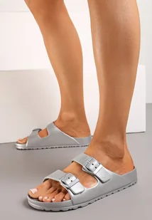 Srebrne Piankowe Klapki z Dwiema Klamerkami Tropia