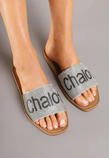 Srebrne Płaskie Klapki Ozdobione Napisem Delionel