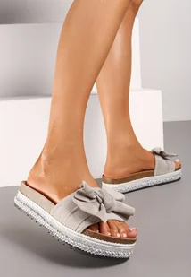 Szare Płaskie Klapki w Stylu Boho Ozdobione Kokardą Fieanna