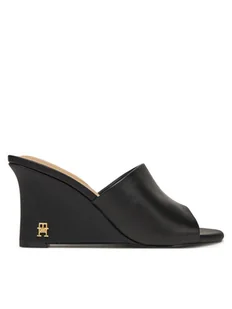 Tommy Hilfiger Klapki Leather Wedge Mule FW0FW08418 Czarny