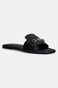 Tommy Hilfiger klapki skórzane LEATHER HORSEBIT MULE damskie kolor czarny FW0FW08420