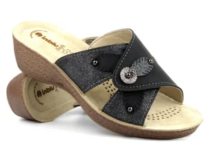 Klapki damskie na platformie czarne skórzana wkładka Inblu ED-15-37