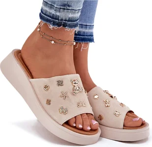 Klapki damskie od marki Vinceza to elegancka i stylowa propozycja na ciepłe dni. Wykonane z naturalnego zamszu, gwarantują wysoką jakość i komfort noszenia. Model osadzony na platformie zapewnia stabilność i wygodę, jednocześnie dodając lekkości całej stylizacji. Klapki wyróżniają się modnymi przypinkami na pasku, które stanowią ciekawy akcent i nadają obuwiu wyjątkowego charakteru. To doskonały wybór dla kobiet szukających połączenia klasyki z nowoczesnym wyglądem.