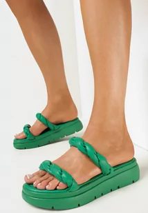Zielone Klapki na Grubej Podeszwie z Ozdobnymi Paskami Laphne