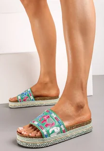 Zielone Klapki na Ozdobnej Podeszwie z Haftowanymi Słoniami Risatta
