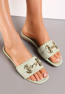 Zielone Klapki na Płaskiej Podeszwie z Klamerką z Cyrkoniami Kilatri