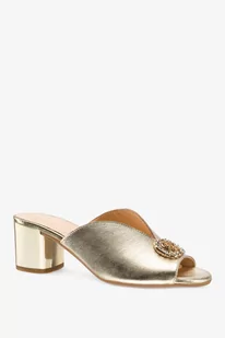 Złote klapki skórzane damskie na złotym klocku zabudowane z ozodbą cyrkonie PRODUKT POLSKI Casu 2714-703-37