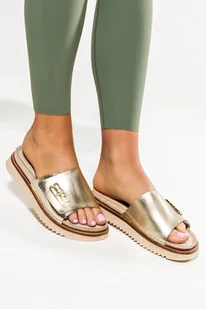Złote klapki skórzane damskie złota ozdoba bieżnikowana platforma PRODUKT POLSKI Casu 50101