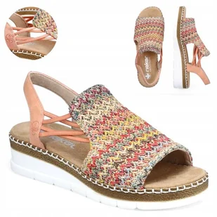Sandały damskie na platformie wygodne wsuwane eleganckie RIEKER V1241-90 Wielokolorowe Pomarańczowe 39