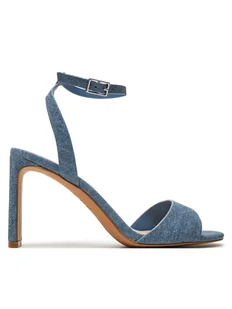 Niebieskie Sandały na Koturnie Ozdobione Plecionką Zapinane na Sprzączkę Waldoni