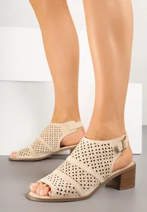Beżowe Sandały Botki na Słupku z Ażurową Cholewką i Noskiem Peep Toe Lanira