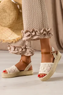 Beżowe sandały damskie espadryle plecione ażurowe na platformie Carla F210-2