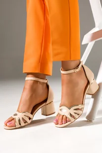 Beżowe sandały damskie na ozdobnym klocku ze skórzaną wkładką Casu U24X2-BE
