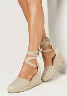 Beżowe Sandały Espadryle na Plecionym Koturnie Wiązane Wokół Kostki Aldopha