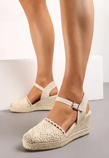 Beżowe Sandały Espadryle z Plecionym Koturnem i Ażurowym Noskiem Soonia
