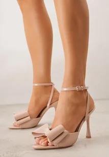 Beżowe Sandały Lakierowane Ozdobione Kokardkami Varona
