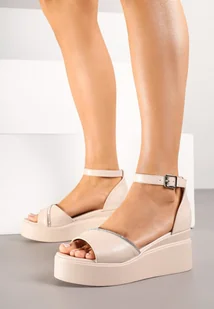 Beżowe Sandały na Koturnie z Cyrkoniami Natirave