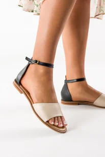 Beżowe sandały skórzane damskie z zakrytą piętą pasek wokół kostki PRODUKT POLSKI Casu 2287-130-100