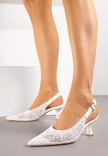 Białe Haftowane Sandały Vices na Szpilce Typu Slingback Atesia