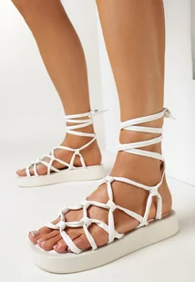 Białe Płaskie Sandały z Wiązaniem przy Kostce Ozlana
