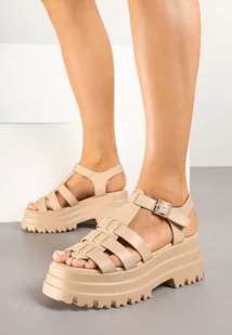 Ciemnobeżowe Sandały Gladiatorki na Grubej Podeszwie Beliane