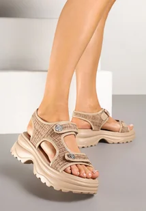 Ciemnobeżowe Sandały Tweedowe na Grubej Podeszwie Setania