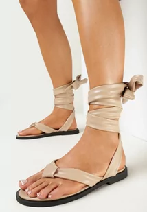 Ciemnobeżowe Sandały Wiązane na Łydce w Stylu Japonek Eleanis