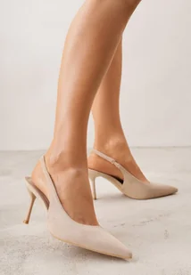 Ciemnobeżowe Sandały Slingback z Imitacji Zamszu na Szpilce z Noskiem w Szpic Delanoe