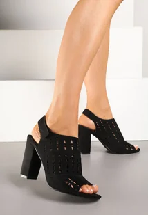 Czarne Ażurowe Sandały na Słupku Vices ze Skórzaną Wkładką Linetelia