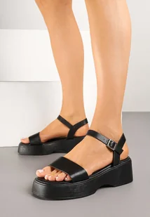 Czarne Sandały na Koturnie i Platformie Zapinane na Sprzączkę Effiene