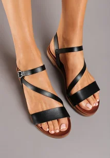 Czarne Płaskie Klasyczne Sandały Irini