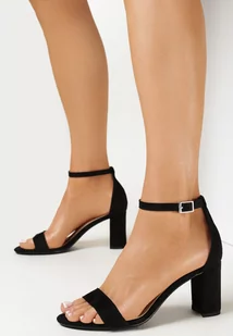 Czarne Sandały na Słupku Ze Sprzączką Lanleh