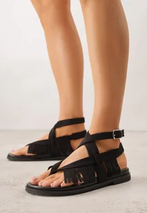 Czarne Sandały w Stylu Rzymianek z Frędzlami Lysoph