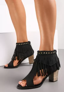 Czarne Sandały za Kostkę z Frędzlami i Ćwiekami Inayat