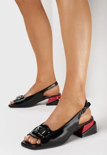 Czarno-Czerwone Sandały na Ozdobnym Słupku z Klamerką i Noskiem Peep Toe Laseria