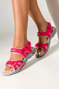 Czerwone sandały damskie sportowe na rzep bieżnikowana podeszwa szare wstawki Casu model RS2907-7W to nie tylko praktyczne i wygodne obuwie na ciepłe dni, al...