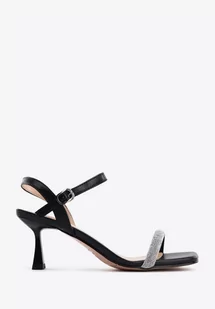 Damskie sandały z błyszczącym paskiem czarno-srebrne 37