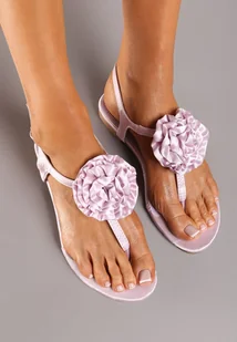 Fioletowe Sandały w Stylu Japonek na Płaskiej Podeszwie z Kwiatem Gandrea
