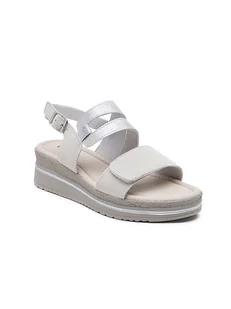 Foreverfolie Sandały w kolorze srebrno-kremowym na koturnie