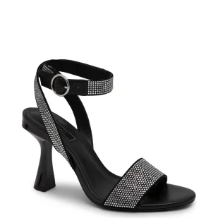 Czarne Sandały na Szpilce z Ozdobnymi Klamrami i Cyrkoniami Dinnalia