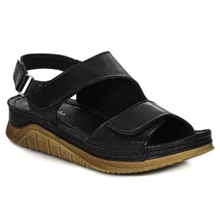 Maciejka Sandały damskie skórzane na rzepy czarne-39