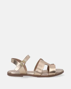 Klasyczne sandały damskie wykonane z naturalnej skóry w złotym kolorze. Minimalistyczna forma z szerokimi paskami i delikatnymi wycięciami tworzy elegancki, ponadczasowy design. Pasek z regulowaną klamerką z tyłu stabilizuje stopę, a płaska podeszwa zapewnia wygodę na co dzień. Idealny wybór dla kobiet ceniących prostotę, komfort i uniwersalność w letnich stylizacjach. skórzane wkładki okrągłe noski zapięcie na sprzączkę modna, symetrycznie wycinana cholewkaRozmiarówka zaniżona, sugerujemy zakup większegorozmiaru.