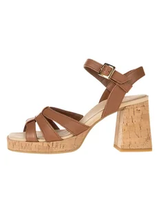 Paul Green Sandały w kolorze jasnobrązowym na obcasie