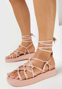 Różowe Płaskie Sandały z Wiązaniem przy Kostce Ozlana