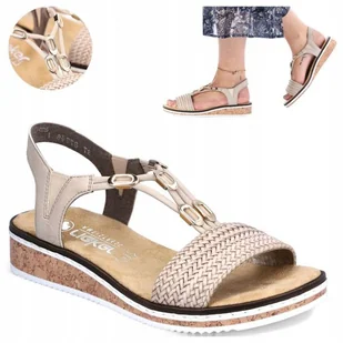 Sandały damskie na koturnie wygodne wsuwane eleganckie RIEKER V3662-62 Beżowy 39