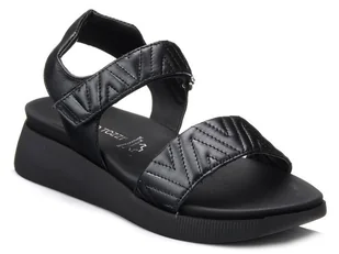 Sandaly damskie na koturnie skórzane czarne Marco Tozzi 28524-39