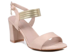 Eleganckie sandały damskie na słupku marki S.Barski. Wykonane z tkaniny imitującej zamsz. Ozdobny pasek daje niesamowity efekt na nodze. Buty posiadają miękk...