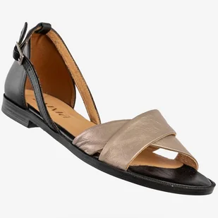 ★ Sandały Damskie Skórzane Buty Płaski Obcas Złote Czarne POLSKI PRODUCENT★ POLSKI PRODUCENT OBUWIA