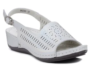 Srebrne sandały damskie marki S.Barski. Cholewka wykonana ze skóry naturalnej. Miękka, skórzana wkładka. Wkładka posiada masujące wypustki. Delikatny koturn ...
